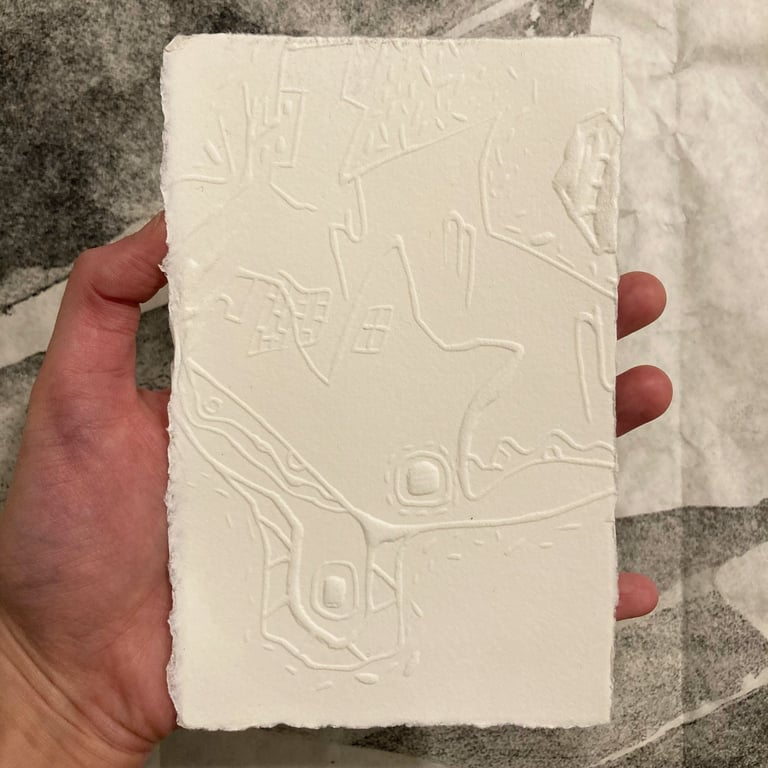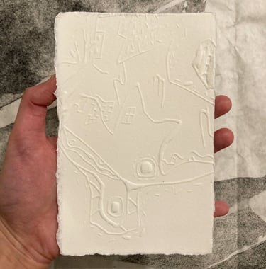 Cactus City, Embossed print from linoleum block, 8"x4", 2020