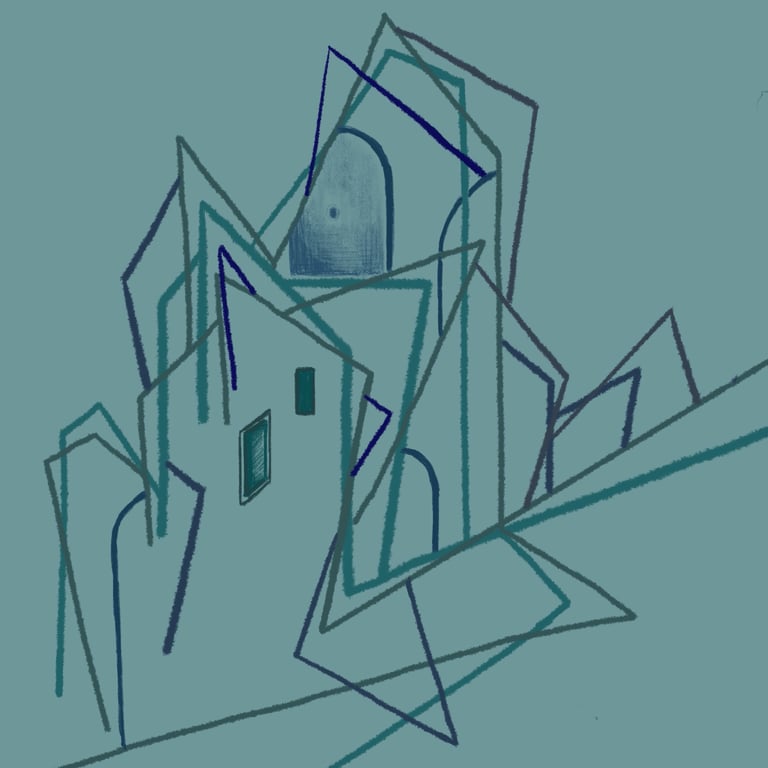 City as a fortress, Digital Drawing on Procreate, 12"x12", 2020