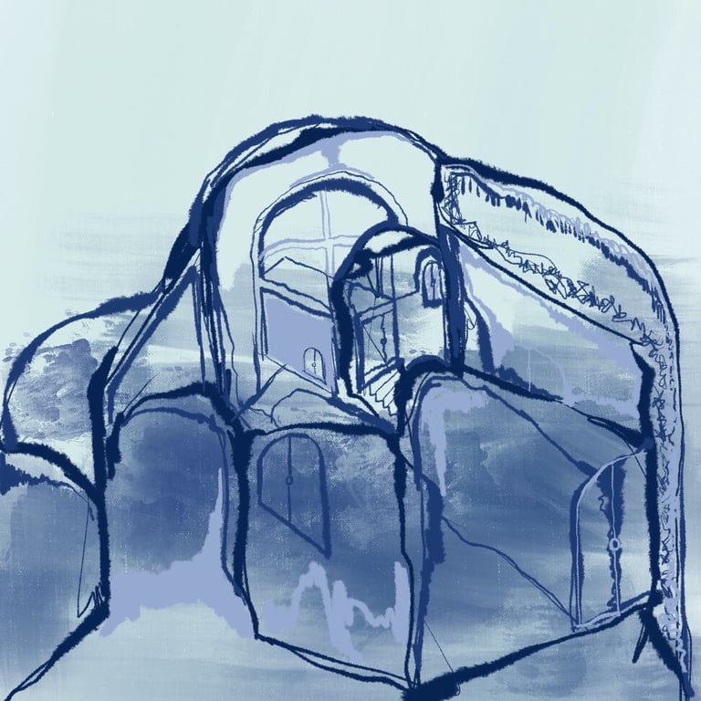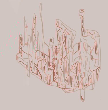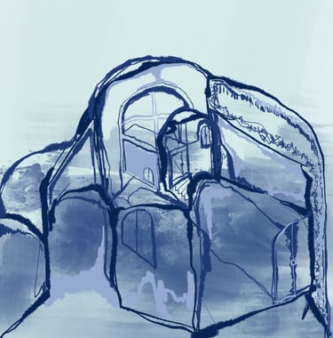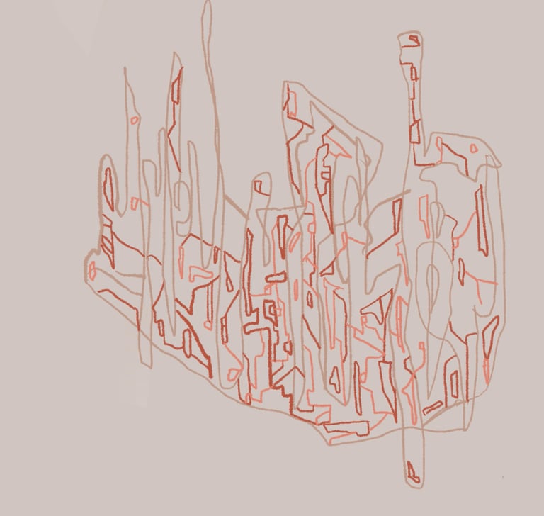 City as a Womb, Womb as a City, Digital Drawing on Procreate, 12"x12", 2021